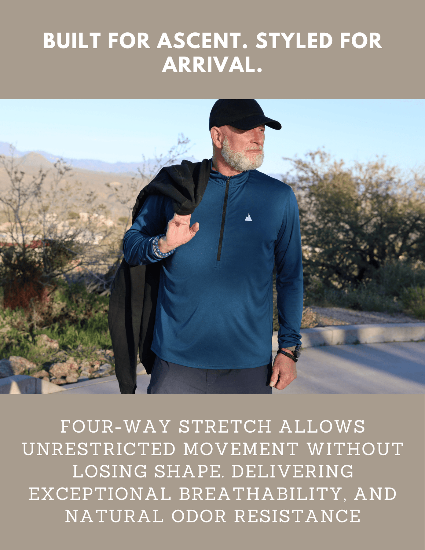Before the ascent. Before the storm. The Base Camp ½ Zip Pullover was designed for the man who understands performance isn’t seasonal — it’s continuous. Built as a refined evolution of technical apparel, this piece lives at the disciplined intersection of urban life and outdoor pursuit.